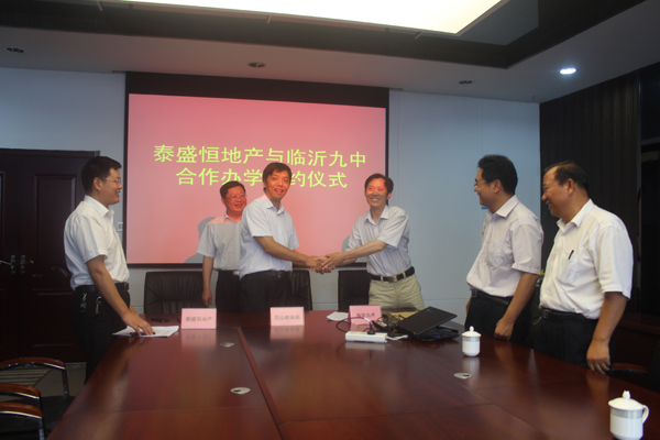 為促進(jìn)蘭山區(qū)教育事業(yè)發(fā)展,同時(shí)也為感恩回報(bào)社會(huì),7月31日,在蘭山區(qū)教體局的引薦之下,公司與臨沂九中圓滿舉行合作辦學(xué)簽約儀式,推動(dòng)了蘭山教育事業(yè)發(fā)展進(jìn)入新階段。出席本次簽約儀式的代表有蘭山區(qū)教體局李局長(zhǎng)、臨沂九中伊校長(zhǎng)、泰盛恒地產(chǎn)副總經(jīng)理鄭峰等領(lǐng)導(dǎo)。
