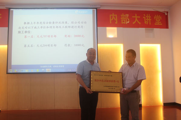 天元707項(xiàng)目部作為金泰華城S4項(xiàng)目的參建單位,在上半年工程檢查中綜合排名第一。獲得公司給予的20000元現(xiàn)金獎(jiǎng)勵(lì)。同時(shí)公司金泰華城項(xiàng)目部也獲得20000元現(xiàn)金獎(jiǎng)勵(lì)。獲獎(jiǎng)單位表示將會(huì)再接再厲,在今后的檢查中取得更好成績(jī)。
