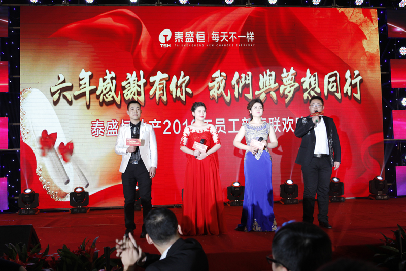晚會之前,廣大員工紛紛在簽名墻和祝福墻上進行簽名和留言,寫下自己的新年愿望和對公司的美好祝福。下午四時,現(xiàn)場人員共同觀看了公司的拜年視頻、《與夢想同行》主題視頻。隨著開場舞《光耀泰盛恒》的華麗上演,晚會拉開帷幕。公司總經(jīng)理趙利捷上臺致答謝詞,表達了對員工及其家屬的感謝和祝福,并宣布晚會正式開始。