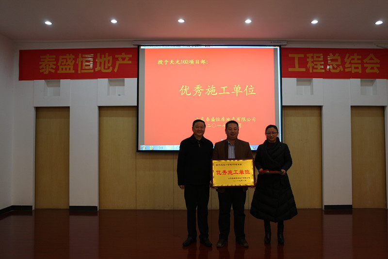 會(huì)上,表彰了金泰華府南府項(xiàng)目、泰盛廣場(chǎng)項(xiàng)目和天元102項(xiàng)目部,對(duì)獲獎(jiǎng)的項(xiàng)目管理中心和優(yōu)秀施工單位進(jìn)行了頒獎(jiǎng)。