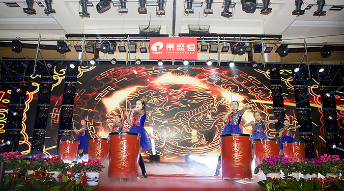 晚會(huì)伊始,公司領(lǐng)導(dǎo)與員工們紛紛在簽名墻和許愿樹(shù)上簽字并寫(xiě)下了新年的期待和對(duì)公司的良好祝愿。下午4:30,泰盛恒全體職工共同觀看了拜年視頻,現(xiàn)場(chǎng)不時(shí)發(fā)出一陣陣掌聲。隨著開(kāi)場(chǎng)舞《騰飛.泰盛恒》的唯美上演,晚會(huì)正式拉開(kāi)了帷幕。公司董事長(zhǎng)馬亞鵬上臺(tái)致答謝詞,感謝員工及其家屬一年來(lái)的大力支持,并宣布晚會(huì)正式開(kāi)始。