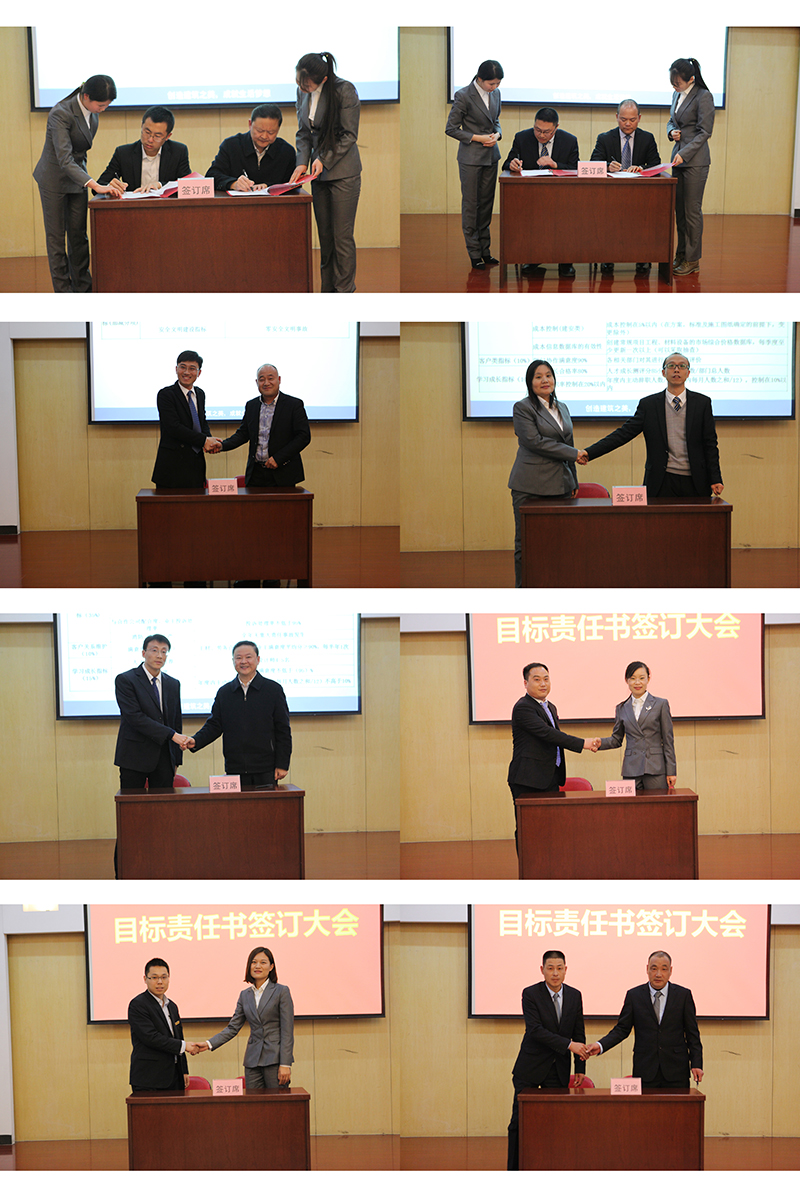隨后,由公司領導班子成員代表公司和各部門負責人簽訂年度目標責任書,其次由黃總代表地產(chǎn)公司與各分子公司簽訂年度目標責任書,最后各分子公司負責人與其各項目負責人簽訂年度目標責任書,整個簽訂儀式在莊嚴而緊張的氣氛中進行。