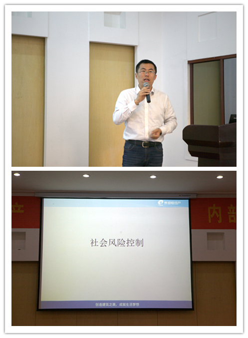 4月19日晚18時,公司在六樓會議室召開了由泰盛恒地產(chǎn)副總經(jīng)理伏勝濤主講的“社會風險控制”培訓(xùn)會,公司全體員工參加了本次培訓(xùn)會。