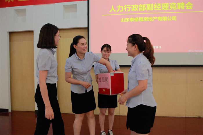 為健全公司管理機(jī)構(gòu),不斷優(yōu)化人力資源配置,6月28日,泰盛恒地產(chǎn)組織召開人力行政部副經(jīng)理競(jìng)聘會(huì)。會(huì)議由工會(huì)主席趙慶芹主持,公司領(lǐng)導(dǎo)班子部分成員擔(dān)任評(píng)委,地產(chǎn)公司全體員工參加會(huì)議。