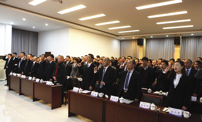 簽訂儀式完成后,公司項(xiàng)目代表泰盛廣場(chǎng)項(xiàng)目總王靜成、分子公司代表港信裝飾工程總監(jiān)洪斌分別上臺(tái)發(fā)言、表態(tài),稱2018年將一手抓質(zhì)量,一手抓進(jìn)度,全力以赴完成2018年經(jīng)營(yíng)目標(biāo)。之后,全體起立,舉行了莊嚴(yán)的承諾宣誓,全員向公司承諾保證完成2018年各項(xiàng)經(jīng)營(yíng)指標(biāo),踐行諾言,履行職責(zé)。