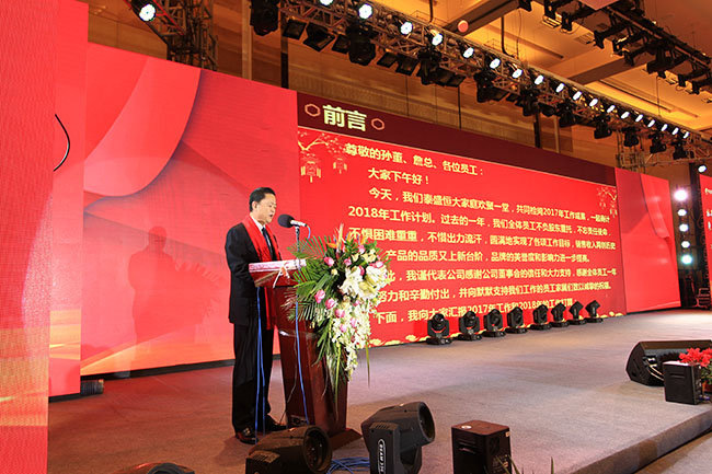 之后總經(jīng)理黃佑忠作了全面細致的工作報告,總結(jié)了公司2017年的工作成績及亮點,安排部署了2018年的各項工作任務。黃總在報告中指出,2018年公司總體發(fā)展將圍繞“一個中心、兩大任務、三項指標、四大提升、五個項目”展開,大家在新的一年里齊心協(xié)力,在“一二三四五”發(fā)展思路的指引下,以更加飽滿的工作激情,奮力譜寫公司事業(yè)發(fā)展新篇章。