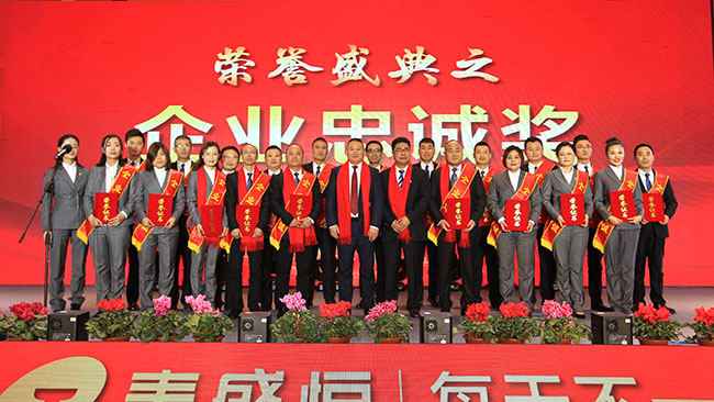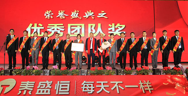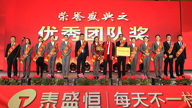 會上,對2017年取得突出成績的優(yōu)秀團隊及個人,以及在公司工作五年以上的老員工進行了隆重表彰,公司高層領(lǐng)導分別上臺宣布了獲獎名單并為其頒獎。其中,泰盛廣場項目獲得優(yōu)秀項目獎、營銷管理中心和招采管理中心獲得優(yōu)秀團隊獎,孫董為獲獎團隊頒獎了榮譽獎牌。成績只代表過去,希望獲獎的團隊及個人在新的一年里戒驕戒躁、再接再厲,充分發(fā)揮模范帶頭作用,為公司發(fā)展再立新功。