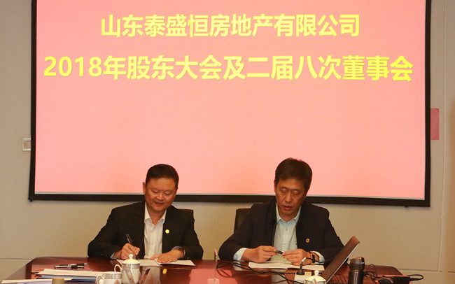 2018年3月30日上午9時(shí),泰盛恒地產(chǎn)2018年股東大會(huì)及二屆八次董事會(huì)在二號(hào)會(huì)議室順利召開。會(huì)議由公司董事長馬亞鵬主持,陜西金泰恒業(yè)股東代表馬亞鵬、華鵬集團(tuán)股東代表孫鵬、公司董事趙利捷、孫磊出席了本次大會(huì),監(jiān)事會(huì)主席王雅萍、監(jiān)事徐愛斌及公司經(jīng)營班子成員列席會(huì)議。