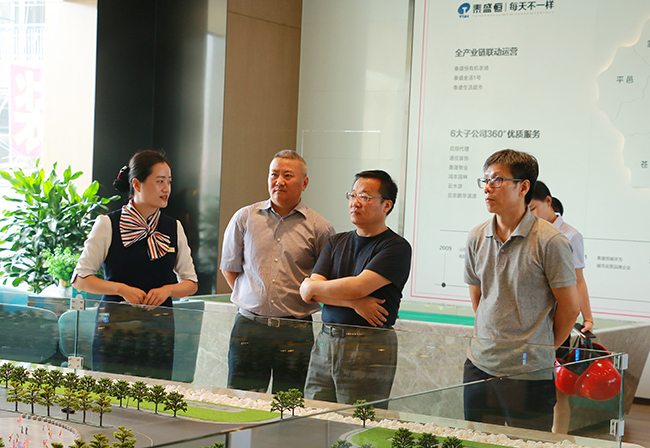 隨后,趙總一行來到了位于金泰·舒格蘭對面的金泰·瑞府項目,先后視察了金泰.瑞府售樓處、景觀示范區(qū)及別墅樣板間,詳細(xì)了解了該項目的區(qū)域規(guī)劃、周邊配套情況、銷售情況、市場前景等。趙總對瑞府項目獨具特色的園林及建筑風(fēng)格,精工細(xì)作的樣板間,銷售人員的精神面貌表示了極大的認(rèn)可。