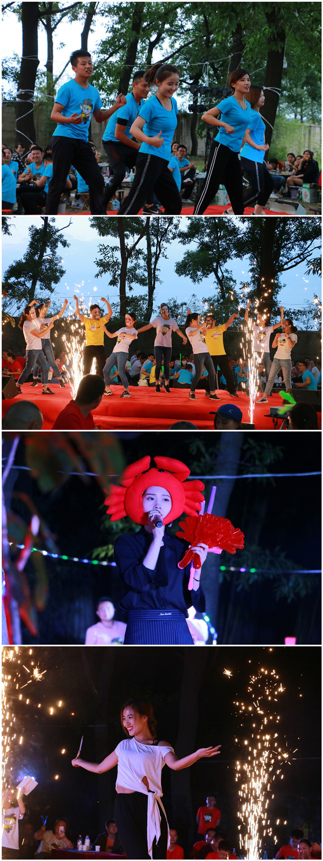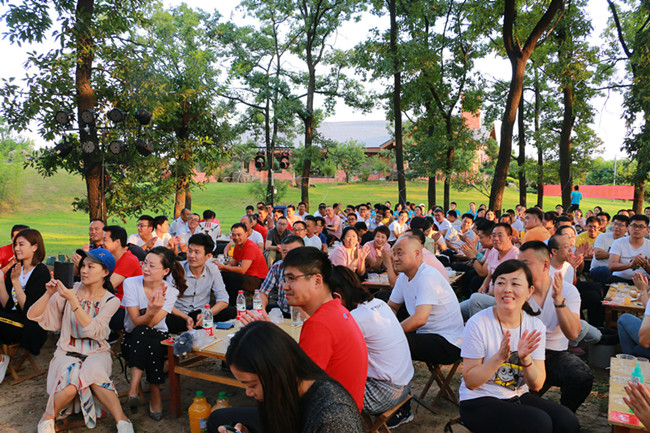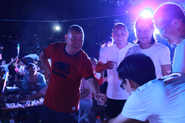 晚會(huì)現(xiàn)場(chǎng)篝火隨風(fēng)燃動(dòng),節(jié)目精彩紛呈,美食種類豐富,大家一邊欣賞精彩的歌舞表演,一邊品位美食美酒、熱情交流、把酒言歡。值得一提的是,所有節(jié)目均由員工在最短的時(shí)間內(nèi)自發(fā)組織和彩排,食物是李官農(nóng)場(chǎng)自養(yǎng)自產(chǎn)的綠色食材烹飪而成,酒水涵蓋茅臺(tái)酒、啤酒和雞尾酒多個(gè)種類,甜點(diǎn)和水果種類豐富,味道精美。節(jié)目中間還穿插了六輪抽獎(jiǎng)環(huán)節(jié),獎(jiǎng)品異常豐厚,有一半的員工贏得了獎(jiǎng)品。