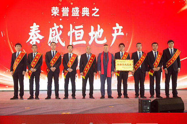 為鼓勵(lì)先進(jìn)、激發(fā)活力,會(huì)上對(duì)2018年取得突出成績(jī)的優(yōu)秀團(tuán)隊(duì)和個(gè)人進(jìn)行了隆重表彰,公司中高層分別為各獎(jiǎng)項(xiàng)頒發(fā)了榮譽(yù)證書(shū)及獎(jiǎng)牌。其中,孫董為獲得泰盛恒速度獎(jiǎng)的泰盛廣場(chǎng)項(xiàng)目頒發(fā)了榮譽(yù)獎(jiǎng)牌,鼓勵(lì)大家在新的一年里繼續(xù)奮勇?tīng)?zhēng)先,積極釋放正能量,不斷開(kāi)拓創(chuàng)新。