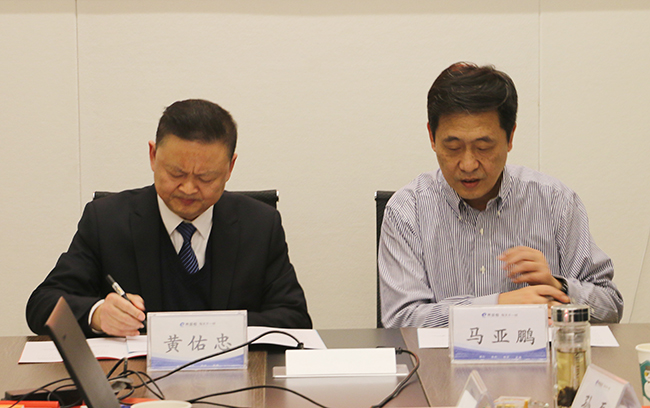 馬亞鵬董事長(右)與黃佑忠總經(jīng)理(左)簽訂目標責任書