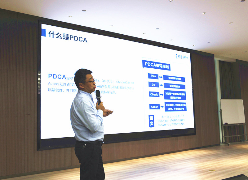 鞏總開場(chǎng)以“小青蛙跳水”游戲的方式活躍氣氛,通過提問復(fù)習(xí)了之前學(xué)習(xí)的PDCA管理方法的知識(shí)。緊接著介紹了QC小組的概況,并按照QC小組的工作步驟,要求各小組找出主題目標(biāo),內(nèi)部討論存在的問題,并通過分析和點(diǎn)評(píng)各小組的案例引導(dǎo)與會(huì)各組逐漸掌握以PDCA的思維去對(duì)一個(gè)問題事件展開分析、找到改善辦法。