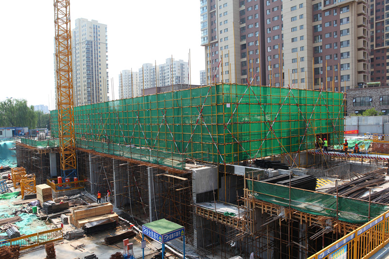 因新冠病毒疫情影響,項(xiàng)目前期施工進(jìn)度受到一定阻滯。為了追趕工期,保障后續(xù)節(jié)點(diǎn)計劃的按時完成,復(fù)工后,施工方迅速調(diào)整施工計劃,馬力全開。由于金泰·舒格蘭24#樓負(fù)一層層高較高,涉及高大模板支撐問題,板總荷載、梁線荷載超出一定范圍,施工要求高、難度大;再加上場地條件受限,工程用料供應(yīng)勉力維持,給項(xiàng)目建設(shè)進(jìn)度帶來較大考驗(yàn)。